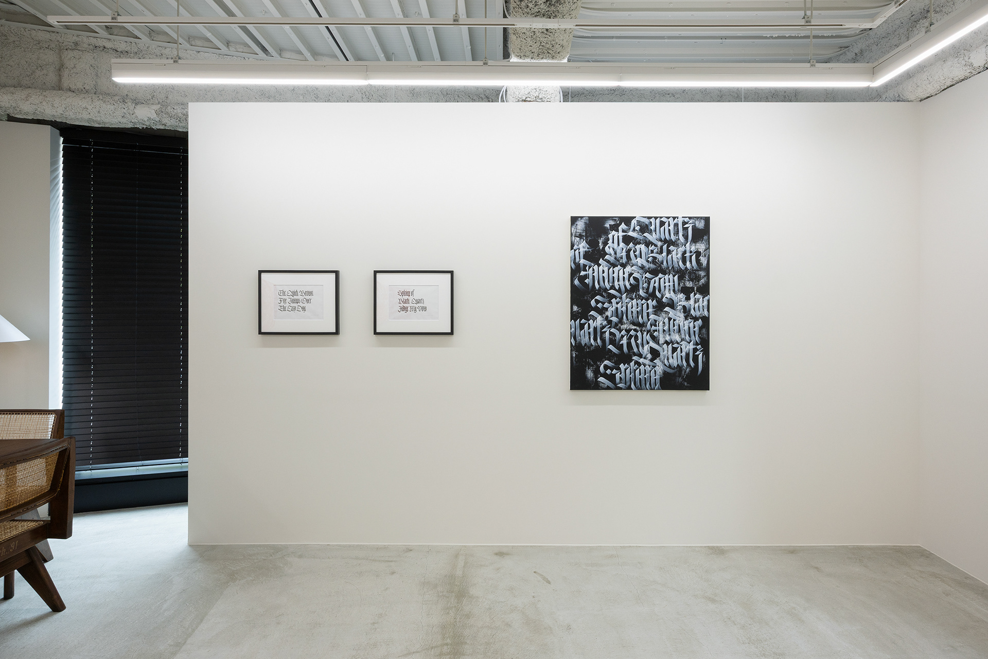 Frost and quartz, the Iroha and the pangram, Blackletter and rubrication. By allowing these to intersect, the exhibition Frost and Quartz presents writing not as a mere vehicle of information, but as a symbolic expression of existence and time.