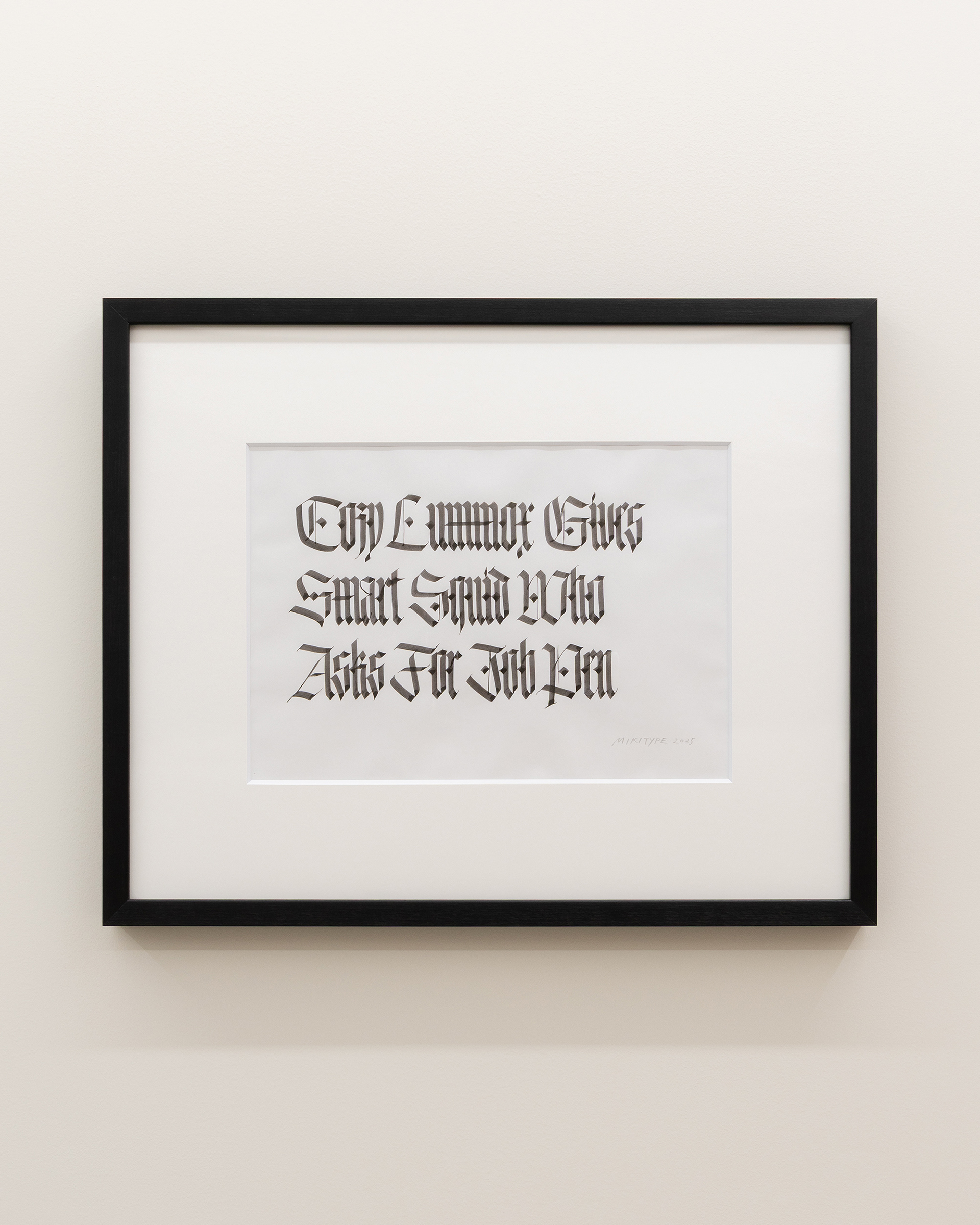 霜と石英、いろは歌とパングラム、ブラックレターとルブリケーション。本展、「Frost and Quartz」はそれらを交錯させることで、文字を単なる情報伝達の手段ではなく、存在や時間をめぐる象徴的表現として提示する。