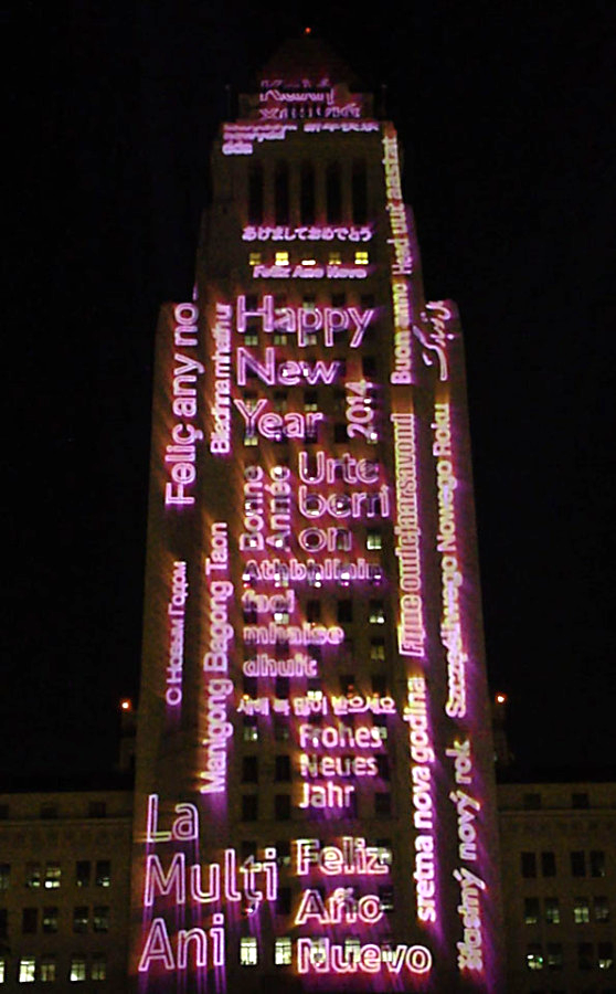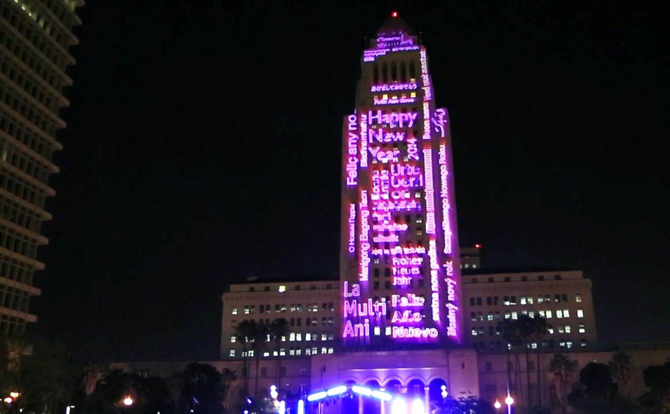 Typographic images for 3-D projection, ‘NEW YEAR’S EVE LA’